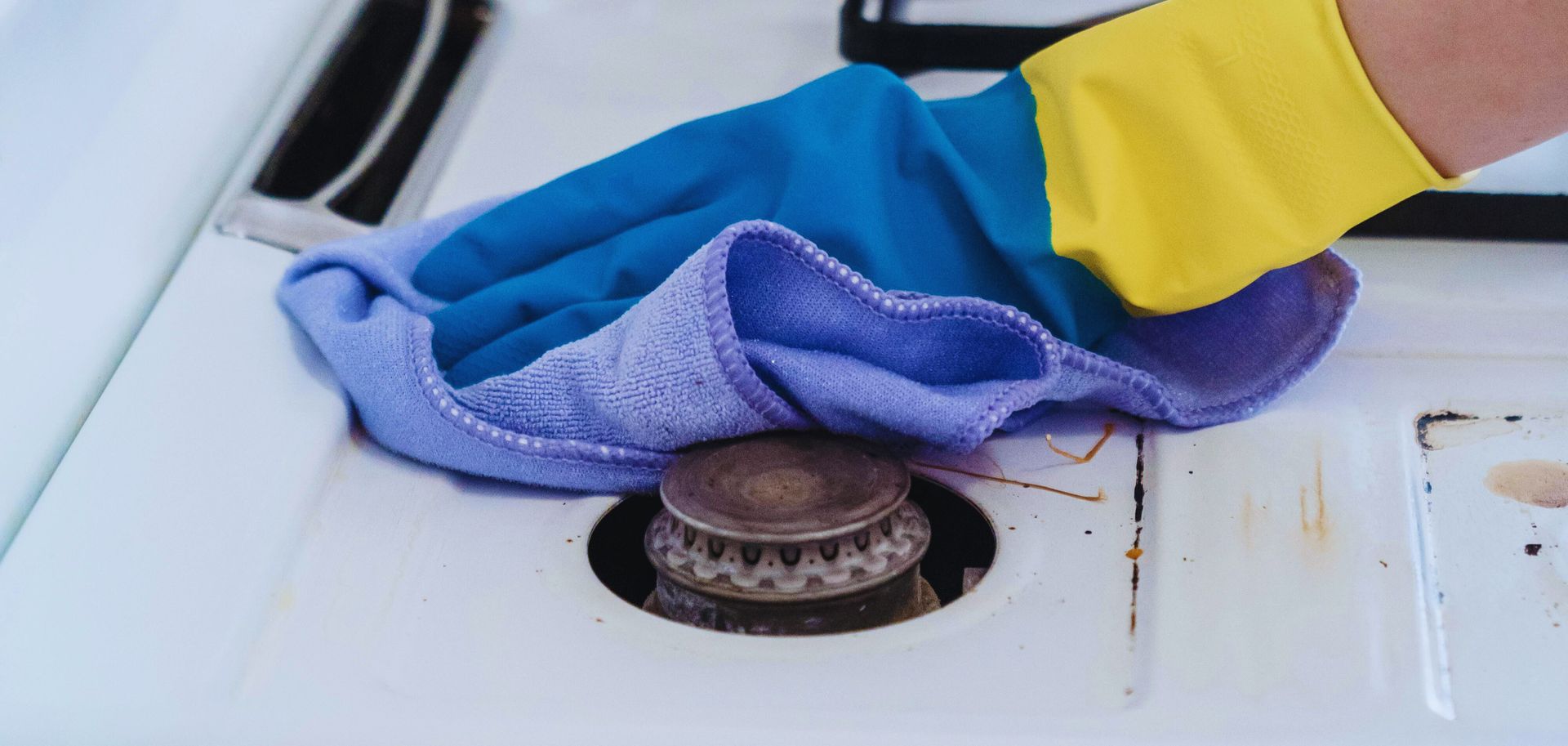 - Oven: Use oven cleaner or a baking soda paste to scrub the interior. Remove and soak racks. Clean the stovetop, removing grates and knobs to clean underneath.